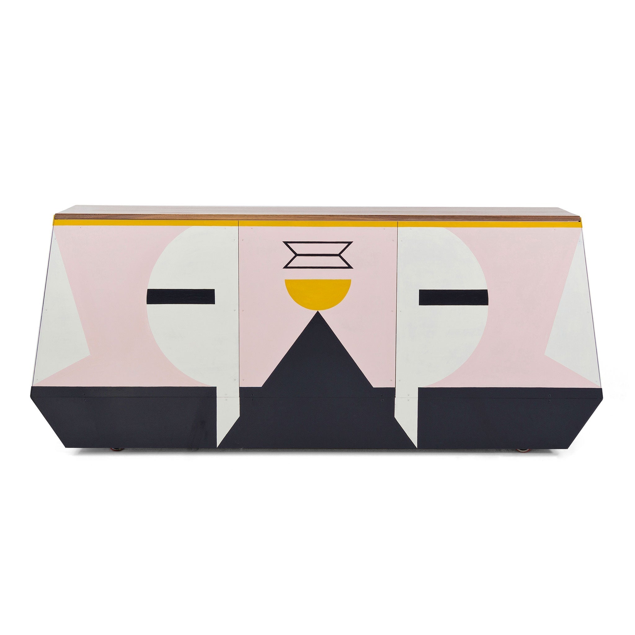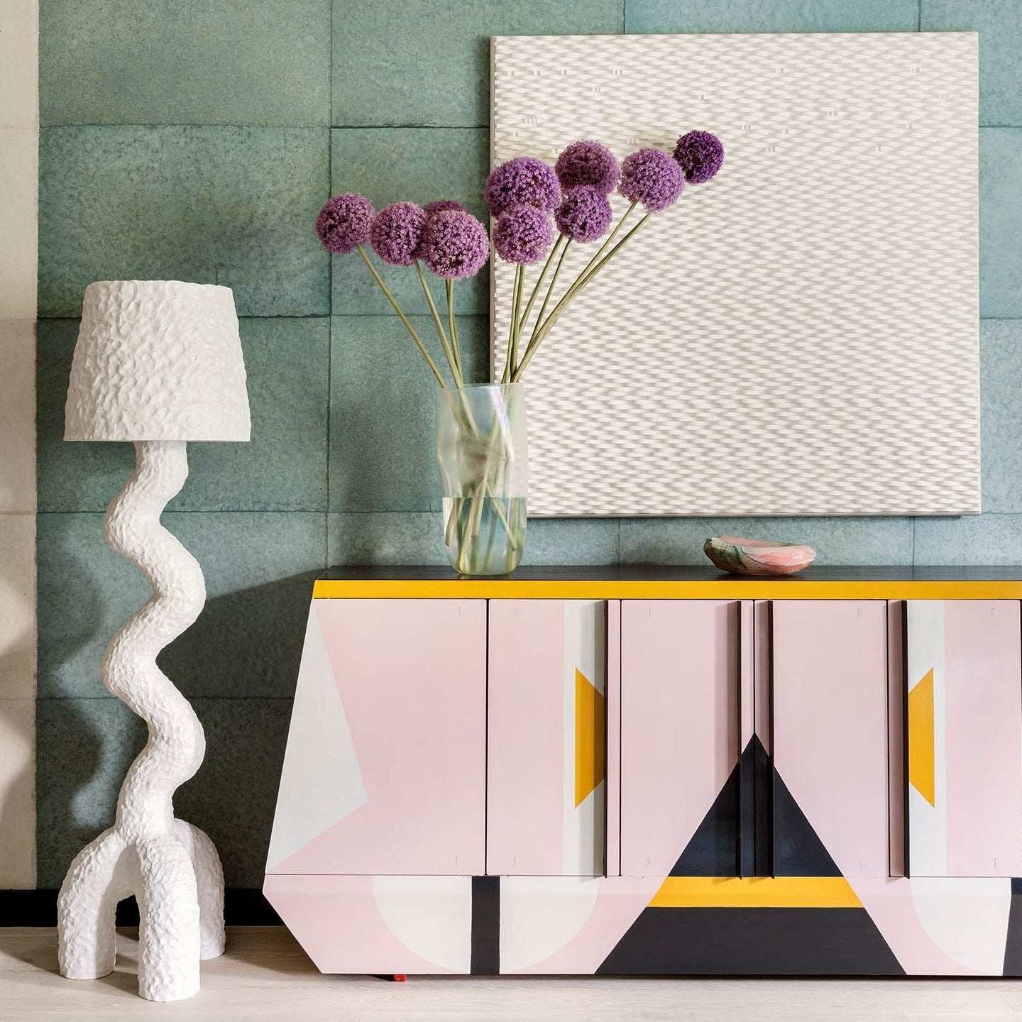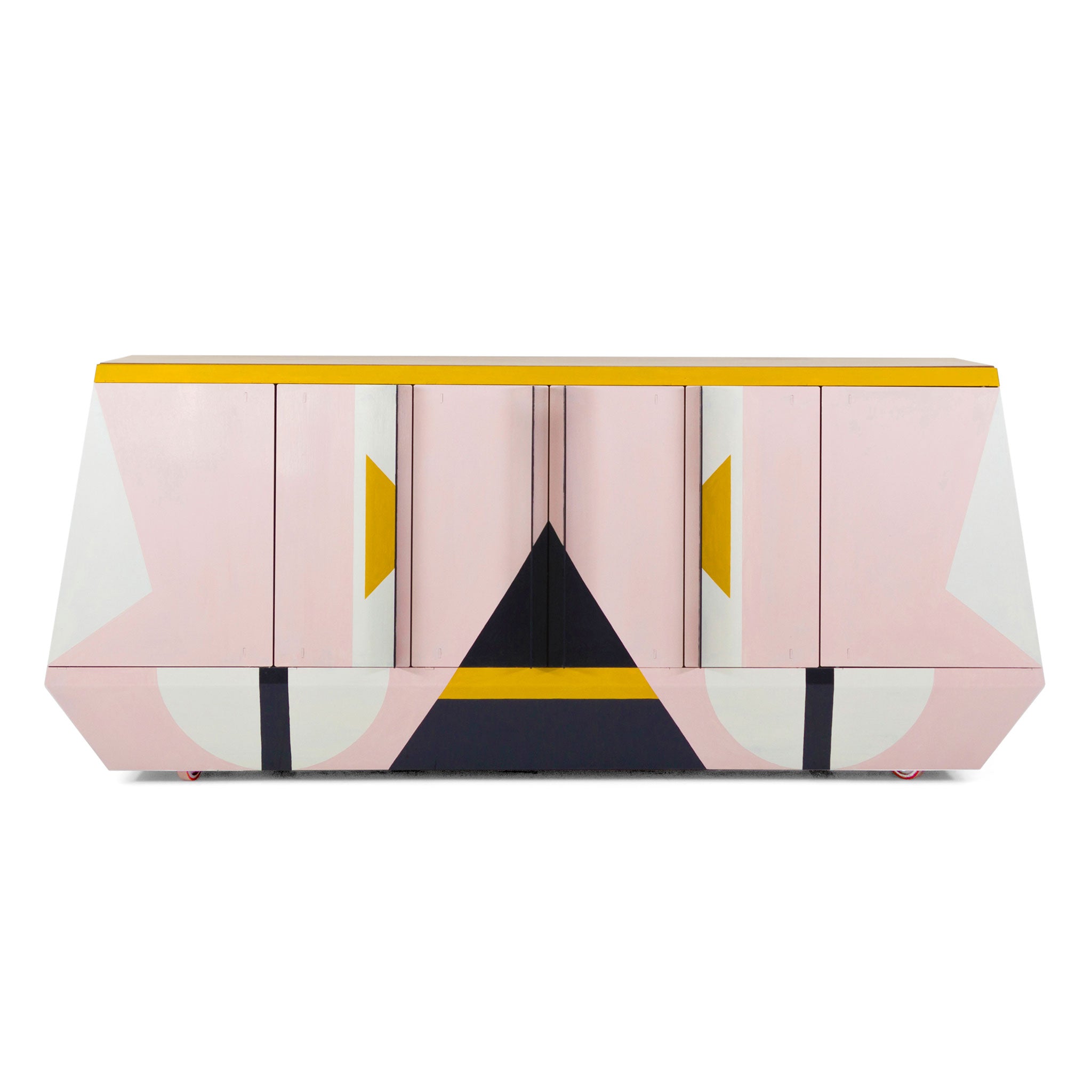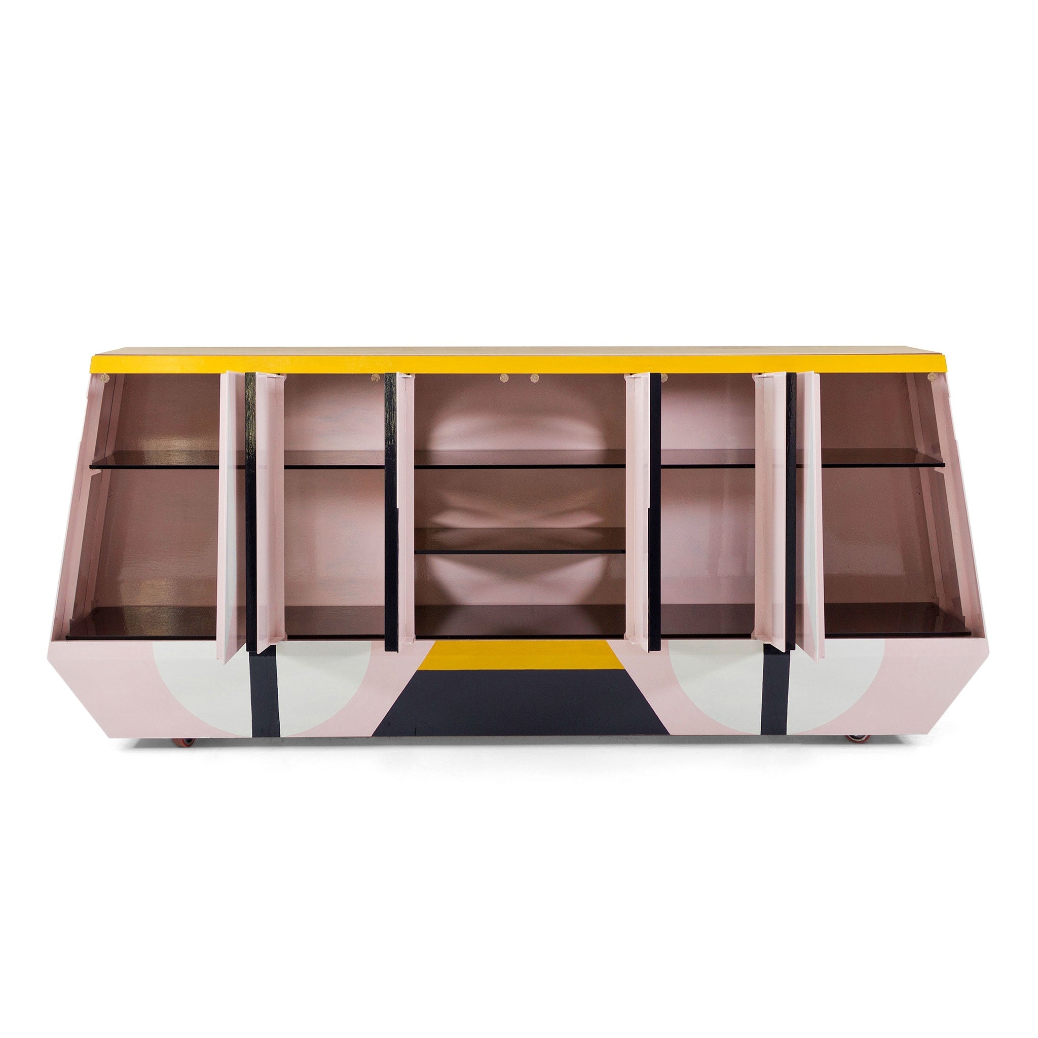 This multidimensional drinks cabinet balances bold movement of form with functional elegance. Commissioned by Kelly Wearstler, this limited edition piece brings a splash of architectural play to your home bar. The sculptural silhouette serves as a fine art object that just happens to house your favorite spirits. It is a sophisticated sum of parts designed to spark conversation at every cocktail hour.