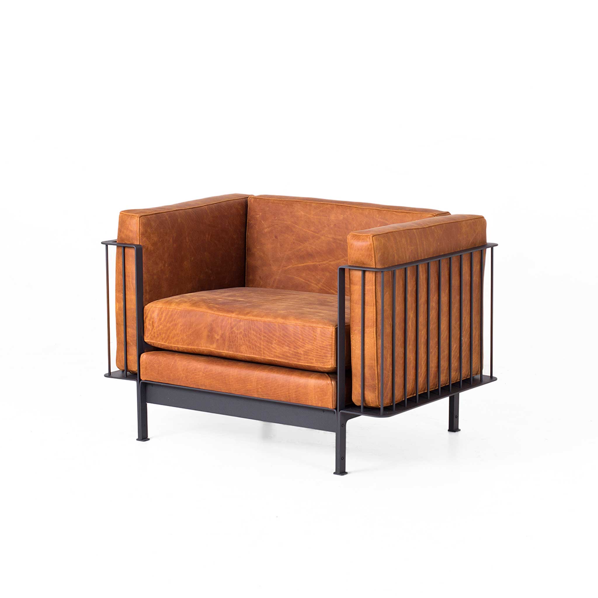 A graphic steel frame meets the buttery softness of distressed-look leather to create a seat that is as striking as it is cozy. Whether you are tackling emails in the office or lounging with a book, this chair adds a bold, industrial flair to your space. The velvet-touch upholstery feels so luxurious you might never want to stand up again. Available in custom finishes, it is the stylishly sturdy sidekick your living room has been waiting for.