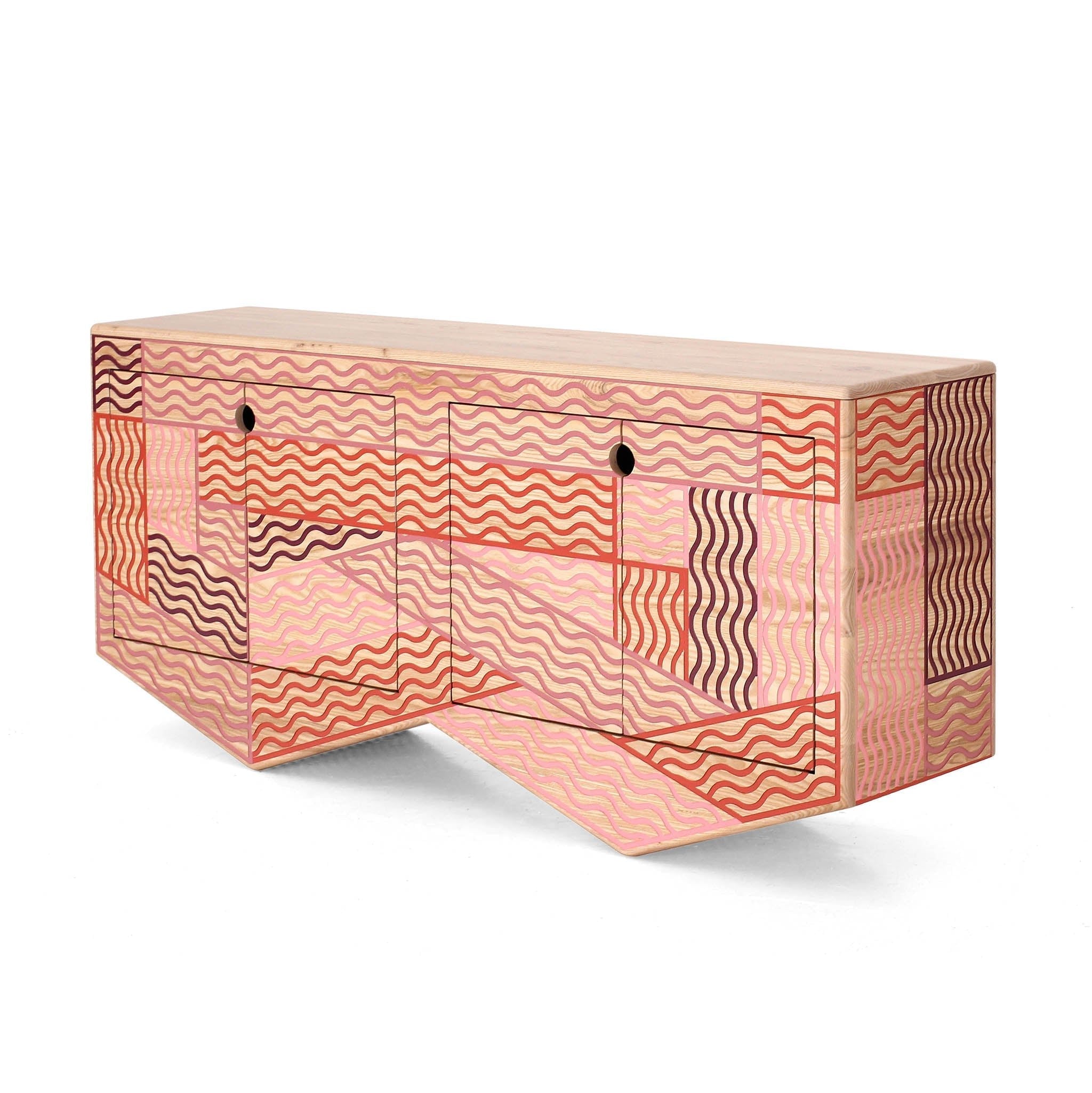 This solid Ash wood masterpiece stands tall on quirky pointed feet, creating a dizzying visual feast with its hypnotic razzle-dazzle pattern. Each limited edition piece serves as a functional sculpture that transforms any room into a high-end art gallery. The vibrating mirage effect ensures your storage isn't just a piece of furniture, but a conversation starter that dances before your eyes. Expertly crafted for the design-conscious collector, this cabinet balances bold geometric flair with the timeless warmth of natural wood.