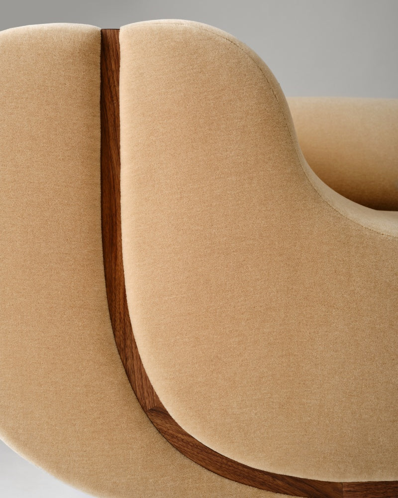 Sink into the sculptural elegance of this masterfully crafted sofa where bold lines meet plush comfort. The rich walnut frame provides a sturdy foundation for the luxurious camel mohair upholstery, making it the ultimate centerpiece for your living space. Handcrafted details and a minimalist silhouette ensure this piece doesn't just sit in a room, it commands it. Whether you're hosting a sophisticated soirée or having a cozy night in, this sofa brings effortless style to every moment.