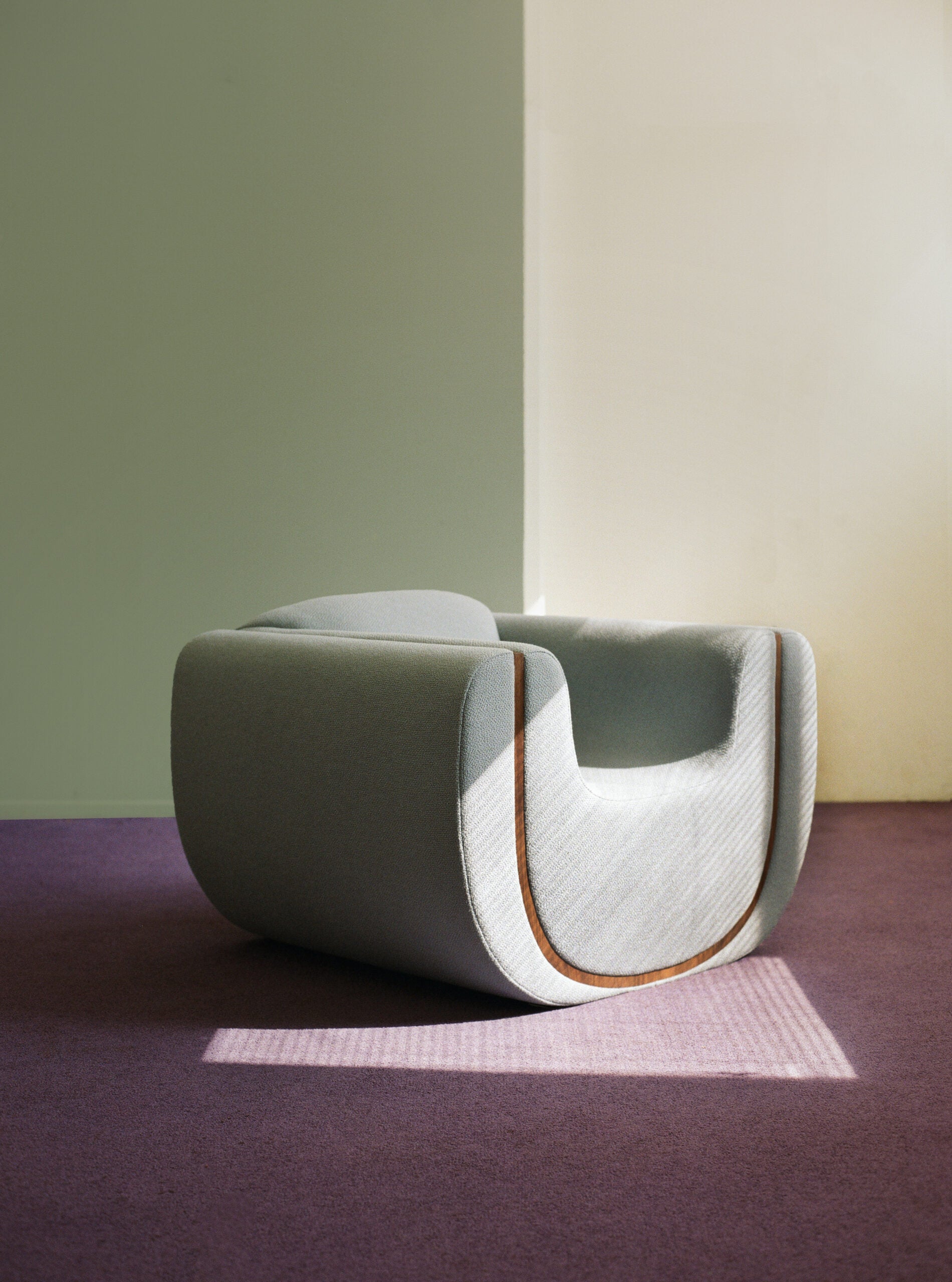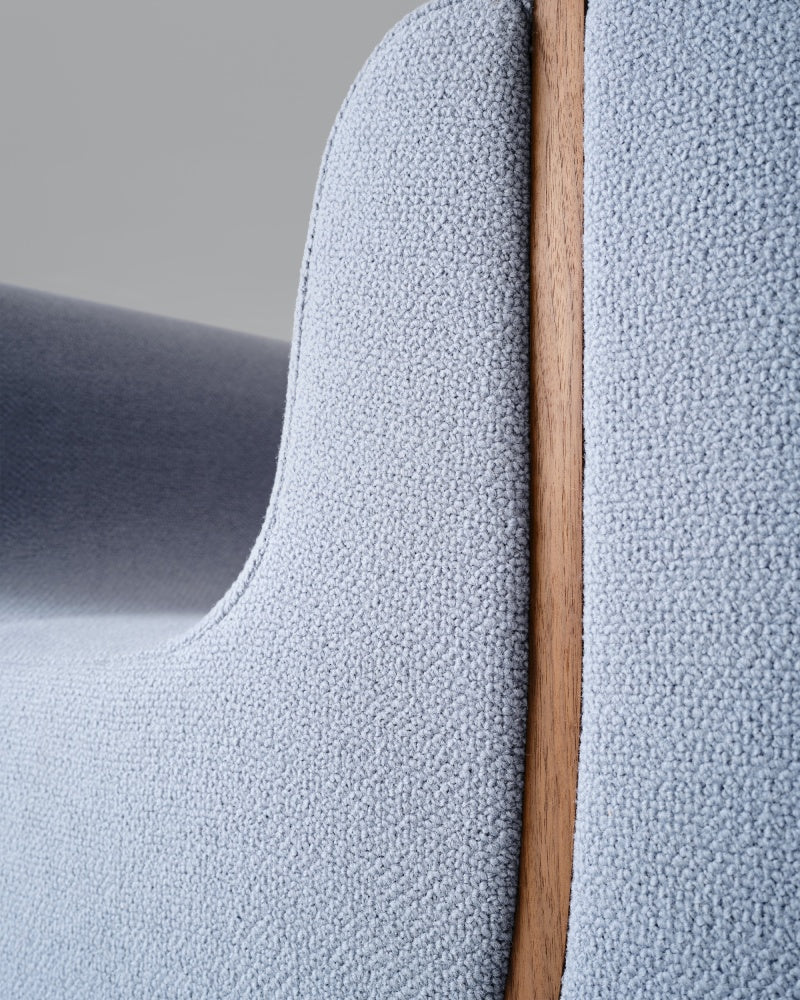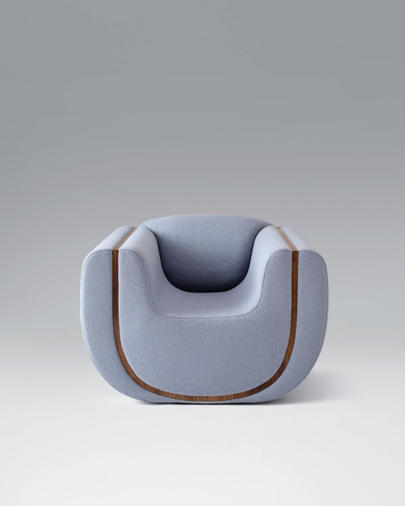 This sculptural lounge chair blends bold geometric wood frames with cloud-like cushioning for a truly sophisticated seat. The rich walnut structure provides a sturdy foundation while the plush textile invites you to sink in and stay a while. Its clean lines and architectural silhouette make it a striking centerpiece for any modern living space or cozy nook. Whether you're sipping an espresso or diving into a novel, this armchair turns lounging into a high-art experience.