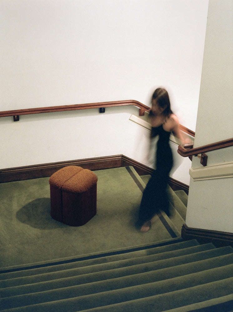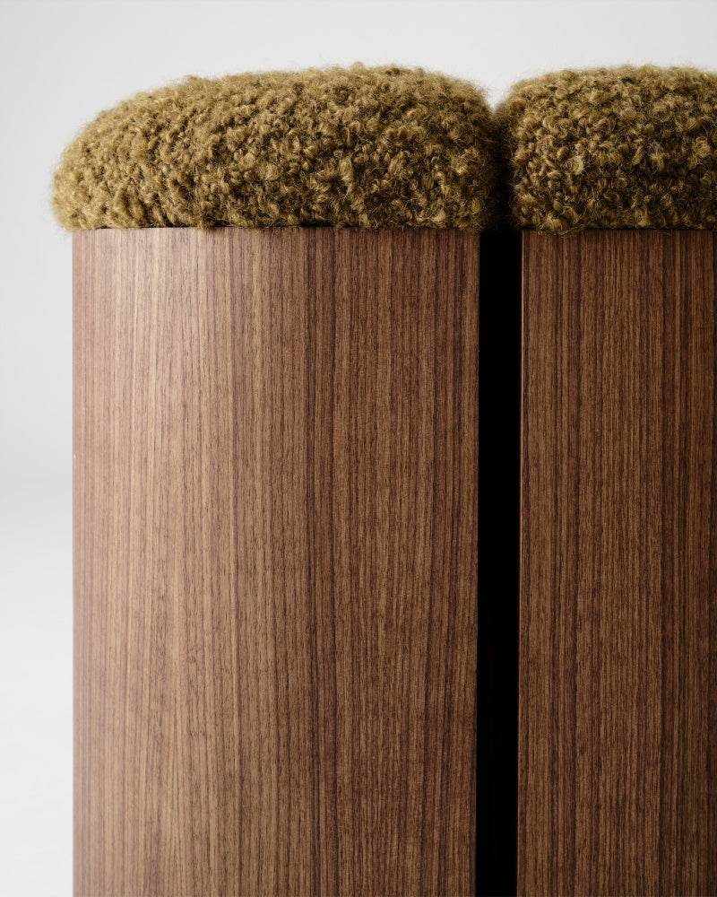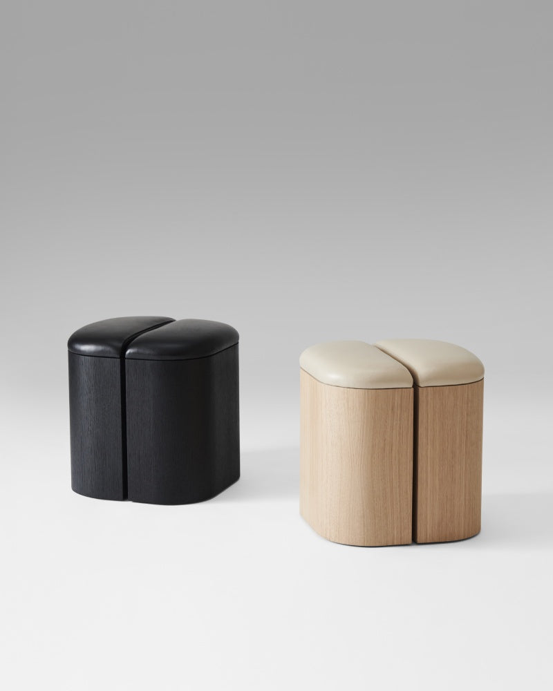 This curvy companion brings a sculptural twist to your favorite nook or vanity. Its solid wood base meets plush upholstery for a seat that is as sturdy as it is stylish. Whether you choose custom fabrics or signature oak, it adds a dash of personality to any room. Pull it up and enjoy the perfect blend of bold geometry and cozy comfort.
