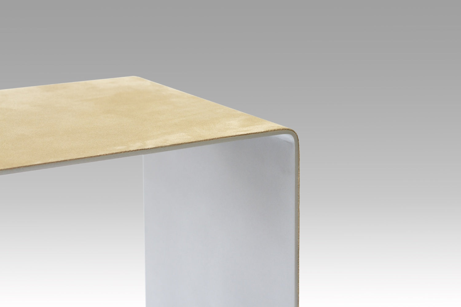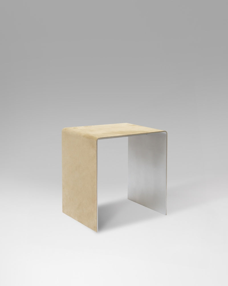 Meet the metallic masterpiece that brings industrial edge right to your favorite lounging corner. This stool pairs high-shine buffed aluminum with a soft suede top for a look that's both tough and tender. It’s the perfect sculptural sidekick for holding your cocktail or hosting a stylish guest. Your living room just got a serious upgrade with this segmented, silver-toned stunner.