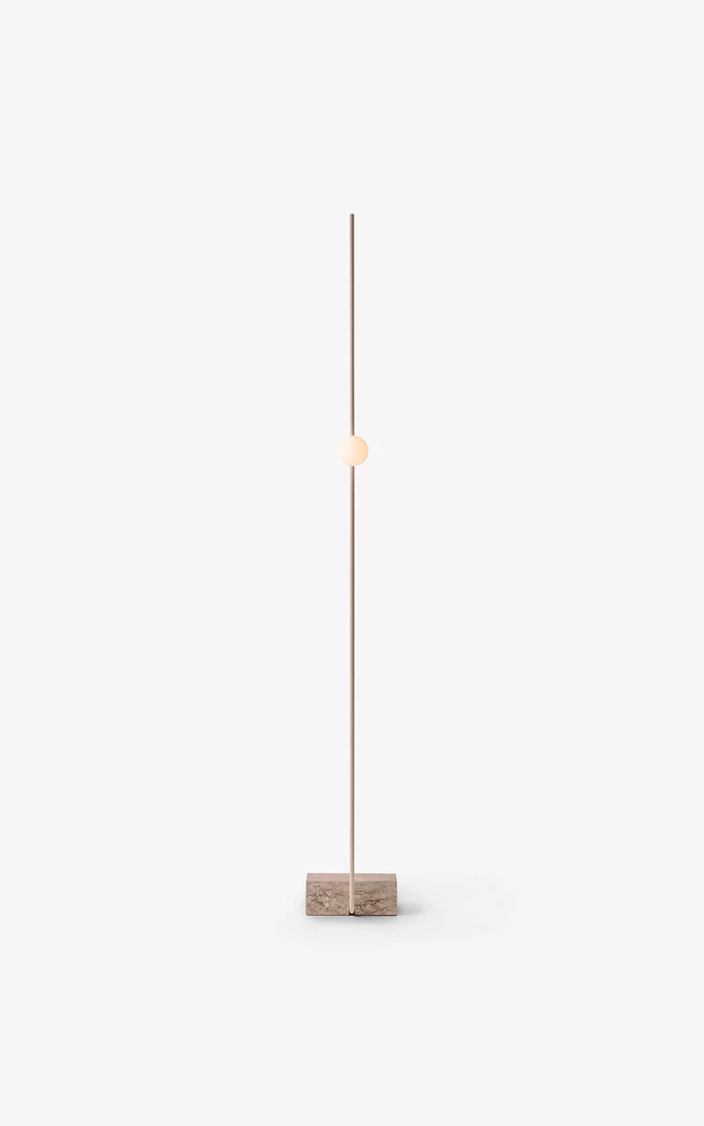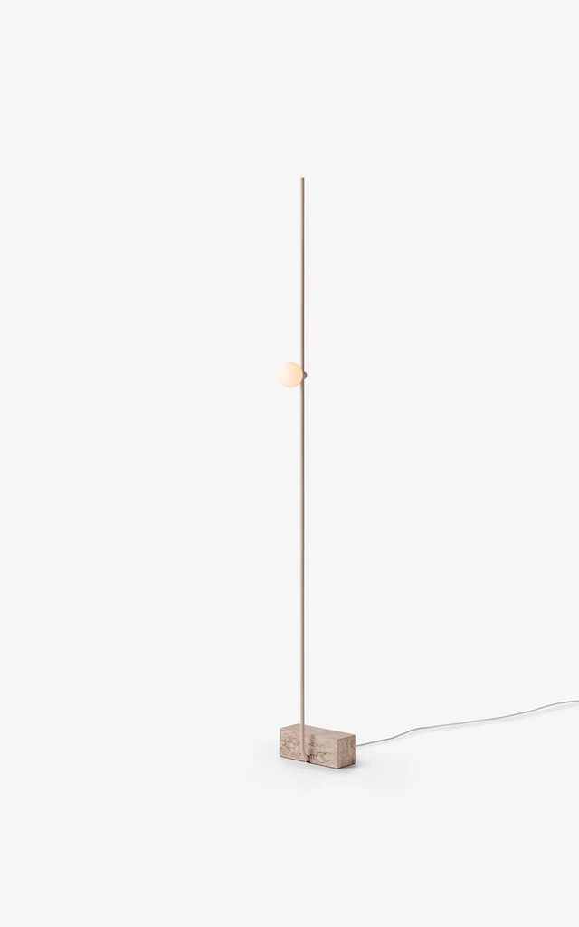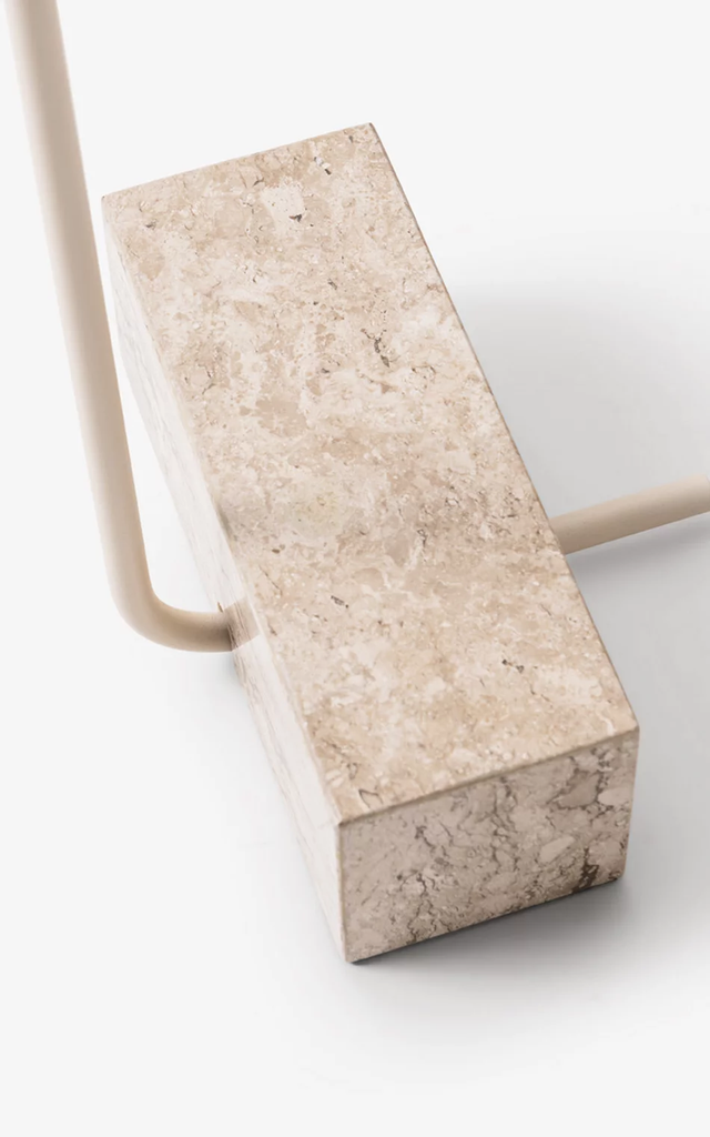The objects from Adobe series were designed from a thin and continuous metal frame, balanced by a heavy marble block, which makes explicit the relation between the elements of the composition, as if each component would have an action over the other. The Adobe floor lamp diffused and subtle light can be used as a sculptural element and as a complementary interiors lighting, as well as next to chairs, sofas, bedsides or consoles which require direct light.