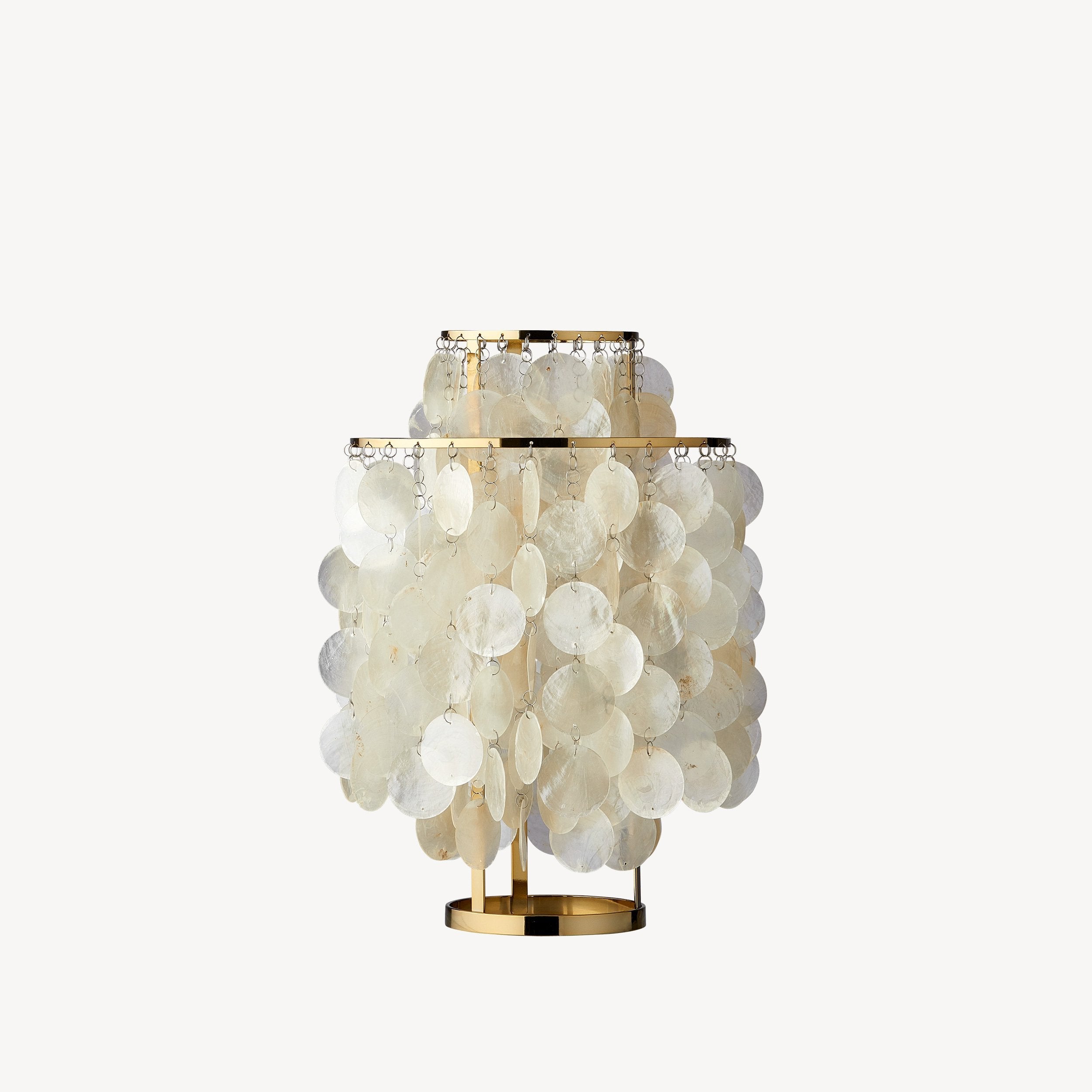 This iconic table lamp brings a melody of light and sound to your favorite nook with its delicate seashell discs. The shimmering brass-finish frame holds dozens of natural shells that dance and glow whenever a breeze or a hand passes by. It’s a mid-century masterpiece that turns every room into a sophisticated, seaside sanctuary. You’ll love how the soft light filters through the pearlescent shells to create a warm, whimsical atmosphere.