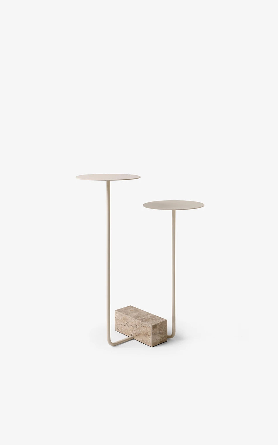 The sensation of movement and balance in static objects is one of our favorite design approaches and it is even more highlighted in the Adobe series. The tables are designed from a thin and continuous metal structure, balanced by a heavy marble block, which makes explicit the relation between the elements of the composition, as if each component would have an action over the other. Whether in a living room, bedroom, hall or even as a display of small objects, Adobe tables are presented as small functional sculptures, bringing organic forms to break the symmetry of the environments.